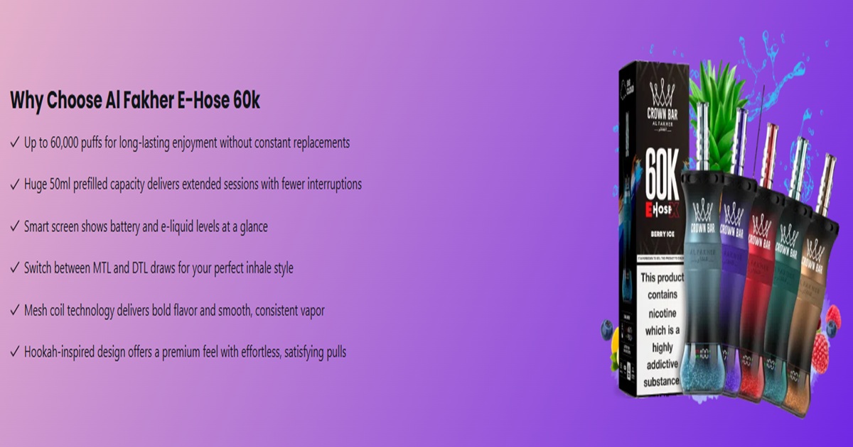 The Al Fakher E-Hose X 60000 is the ultimate choice for shisha lovers who want the closest hookah-style experience in vape form. With massive puff capacity and immersive flavor delivery, it’s built for long sessions and maximum enjoyment. If you want premium performance, deep flavor, and a device that lasts as long as possible, the E-Hose X 60000 stands at the top of the lineup.