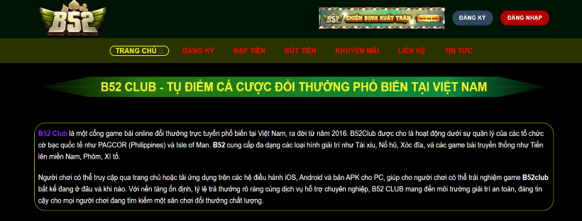 B52 Club cổng game đổi thưởng trực tuyến phổ biến tại Việt Nam, 1 trong những sân chơi uy tín hàng đầu hiện nay. Tự hào mang đến cho người chơi trải nghiệm tốt nhất!