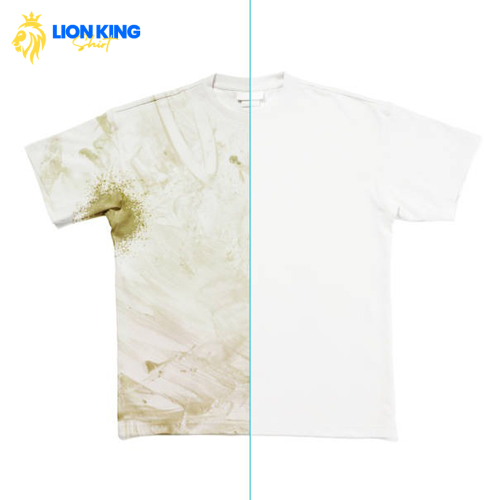 Use the right chemicals to get rid of the stains on t-shirt 4. Wash Matching Colors Have you ever mixed red and white shirts by accident? In this case, the phrase “in the pink” doesn’t mean a good thing. You gotta sort graphic tees by color before washing, to prevent the dye moving back and forth between fabrics. Reds, for example, may bleed onto light shirts if washed together. Also, avoid mixing printed shirts with new, non-colorfast items that could bleed. Printed shirts, especially darker colors, should be washed separately for at least the first few cycles after purchase. This precaution ensures any excess dye is removed before mixing with other laundry. Second Phase: Caring For Graphic Tees Post-Washing 1. Hang Dry When Possible When you’re done washing your Lion King Tee Shirt, don’t depend on drying machines too much. In time, they might betray you (just watch Terminator or WALL-E). But seriously, the dryers’ heat is just too intense – they can damage printed fabric and cause ink to crack or peel. When you can, hang printed tees to air dry fully before wearing or storing. Lay flat on a drying rack or clothesline, smoothing out the fabric to prevent distortion. If machine drying, use the lowest temperature setting and remove immediately when finished to prevent over-drying. Place shirts inside-out and separate from other items to prevent abrasion damage to prints. 2. Proper Storage Don’t let anyone tell you otherwise: how you store a T-shirt does matter. Have you ever thrown a shirt randomly into the drawer without folding? Or worse, crumple the shirt up then stuff it in like stuffing turkeys? In case you haven’t noticed, that’s the fastest way to kill a tee’s vibrant graphics. You gotta fold printed tees neatly, stack ’em up and down in your dresser or closet so you don’t stretch the neck and prints. Store in cool, dark spots far from direct sunlight to avoid fading over time. If stashing graphic tees long term, use cedar blocks or natural stuff to protect from bugs. Avoid non-breathable plastic bins that trap moisture on the fabric. 3. Pre-Treating Stains Here’s a little rhyme for you to remember: “No stain, no pain”. You can’t expect a shirt to be squeaky clean all day, right? It’s best to stop the stains before they even form. Pre-treating tough stains before washing graphic tees improves your chances of removal. Apply a stain pre-treatment spray and let it soak in for 5-10 minutes before washing. For more stubborn spots, use an old toothbrush to gently work the pre-treat product into the fabric. Always check the label for any special cleaning precautions before pre-treating printed areas. For oily food stains, first dab the spot gently with a bit of dish soap to break down the oil, then follow with warm water and stain pre-treatment before washing.