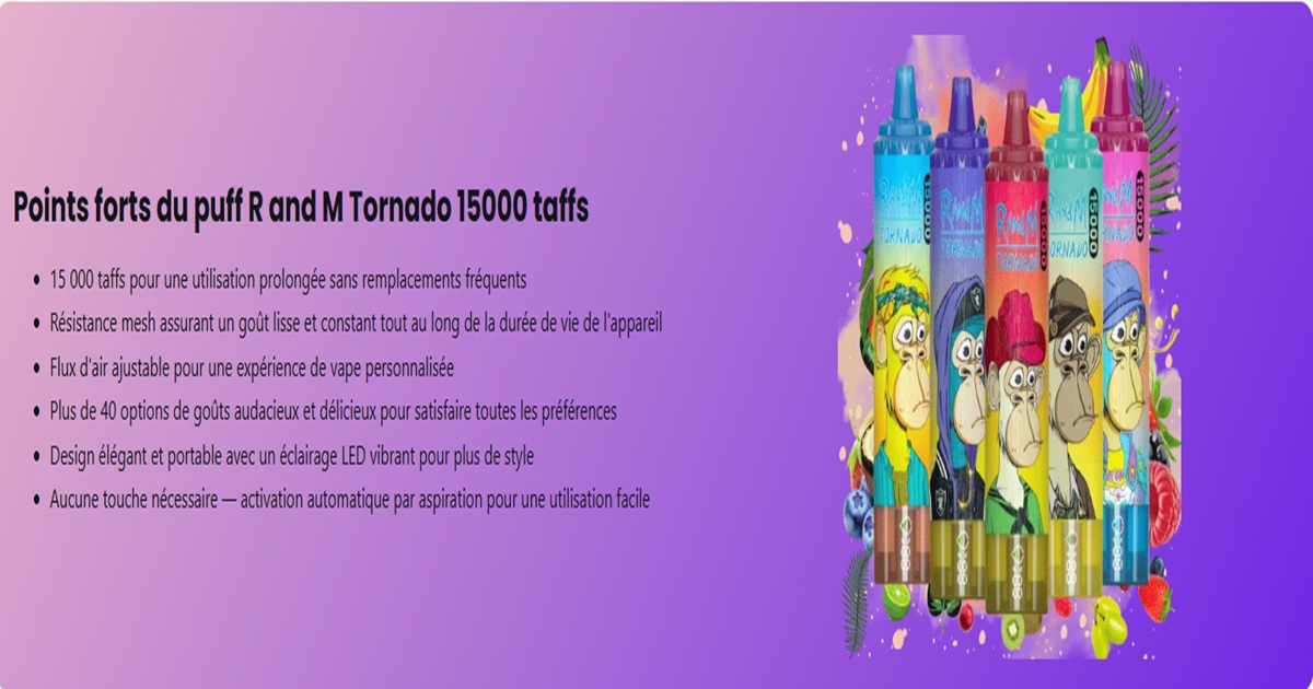 https://scrapbox.io/randmvapefr03/RandM_Tornado_15000_est_un_e_cigarette_jetable_puissant_qui_propose_jusqu'%C3%A0_15_000_bouff%C3%A9es._Il_est_%C3%A9quip%C3%A9_d'une_bobine_en_maille_de_0,9%E2%80%AF%CE%A9_pour_un_go%C3%BBt_intense_et_une_vapeur_dense._Avec_son_r%C3%A9servoir_de_25_mL_de_e_liquide_pr%C3%A9-rempli,_il_off