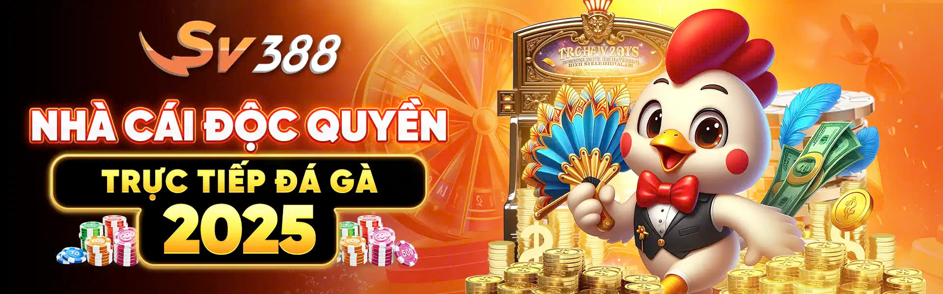 Gia nhập SV388 để trải nghiệm cá cược đá gà trực tuyến đỉnh cao, công bằng và minh bạch. Tích hợp công nghệ livestream HD, hỗ trợ đa nền tảng, nhà cái SV388 thu hút đông đảo người chơi nhờ tỷ lệ kèo cạnh tranh, nạp rút nhanh và khuyến mãi hấp dẫn mỗi ngày cho thành viên mới.