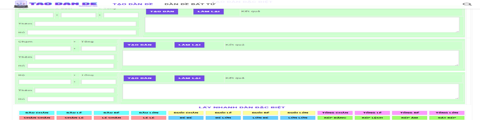 Tạo Dàn Đề là tiện ích tạo dàn xổ số, ghép dàn đề 2d, 3d, 4d đẹp hôm nay miễn phí hỗ trợ đánh quanh năm với tỷ lệ chính xác cao.