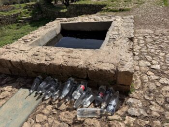 When gathering the water, fill the jug as close to the spring head as possible, never gather downstream. Be very careful as wet glass is extremely slippery. Make sure the lid is securely fastened. When transporting the spring water home, the jugs can sometimes slide around the car. Secure them in place or wrap them with towels or something so they don’t crash into each other.