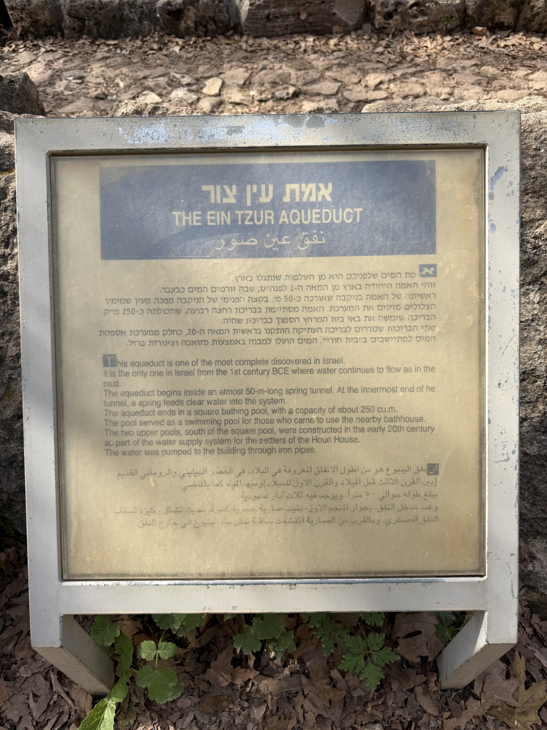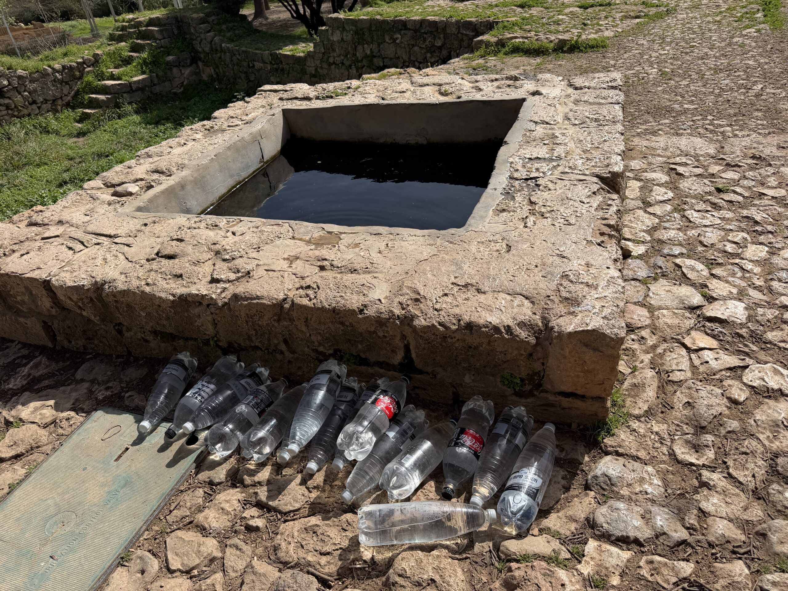 This is a spring which has been in use since the 1st century BCE and it is surrounded by a bathhouse a pool and archeological artefacts from the Roman era and located in the park of Ramat Hanadiv. And has clean drinking water. Near Ceasaria.