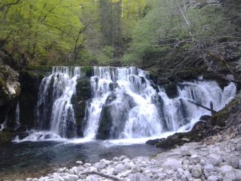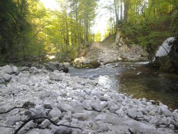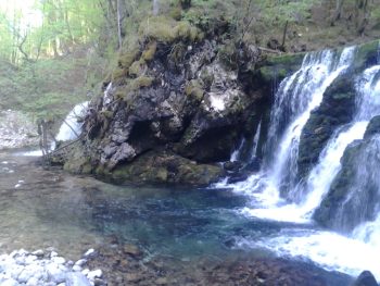 Bohinjska bistrica spring is an hour walk from Bohinjska bistrica town. Spring is quite big and is seen as a waterfall. Air is a bit colder and fresher near Bohinjska bistrica spring and so is the water. On our way to spring we have also seen some smaller water springs. Stony road that is leading to the spring is wide enough also for small all-terrain vehicles.