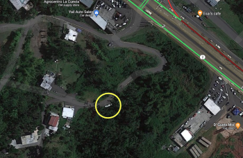 Its basically a concrete container with spring water flowing out. Seems to be privately owned and the owners have a box to leave a tip. Leave a couple bucks to keep this one available and the owners happy. Good water. You need to turn around in someones driveway basically to get back out. It is circled with the yellow circle in the photo. First right after “Life Garden Veggie and Vegan” if coming from Aguada.