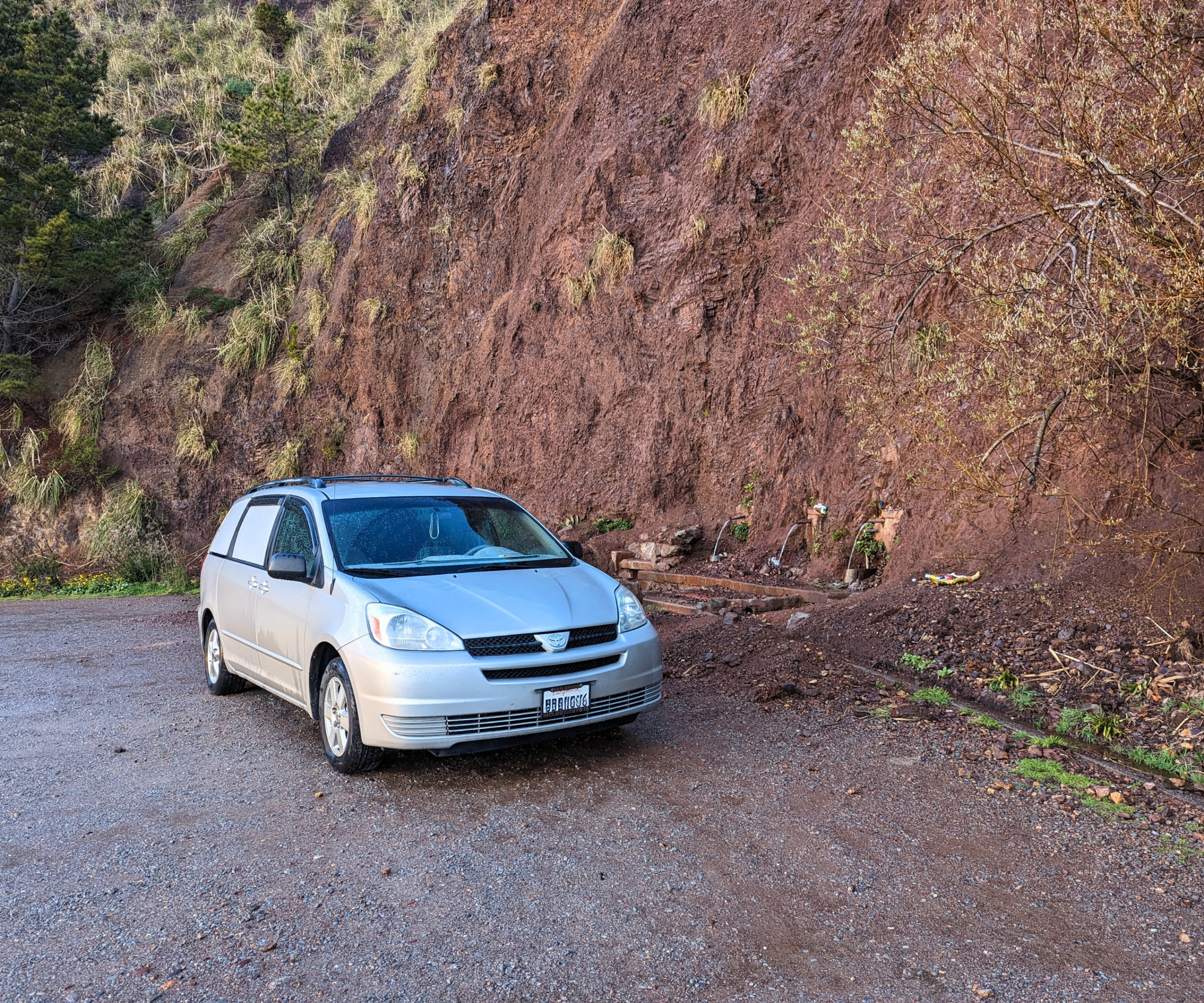 Cold spring coming from deep within Mt. Tamalpais. This is the closest, most accessible quality public spring for much of the Bay Area. Park your car right next to pipes in the large pullout. The center copper pipe has the highest flow but does get occasionally vandalized. Flow rate is good through dry autumn, and really gushes in the spring. Area is nearly vacant most of the time, but can become crowded midday on warm weather weekends. Spring has been lab tested, details here: https://longevitypower.com/red-rock-beach-spring-testing-2013/. Please do not tamper with pipe setup, as local steward has to regularly fix damage that has been done. Please support excellent spring water etiquette and ongoing lab testing here: https://www.meetup.com/BayAreaSpringWater/