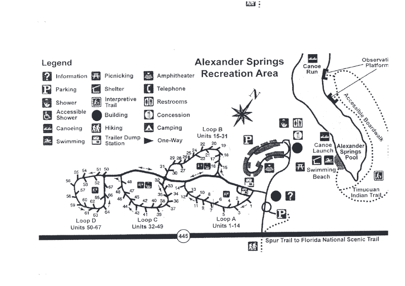 Alexander Springs Recreation Area is located in the Ocala National Forest near the beautiful, turquoise waters of Alexander Springs. With forested scenery and abundant water, the recreation area offers camping, swimming, canoeing, scuba diving (for certified divers), hiking, birding and wildlife viewing.