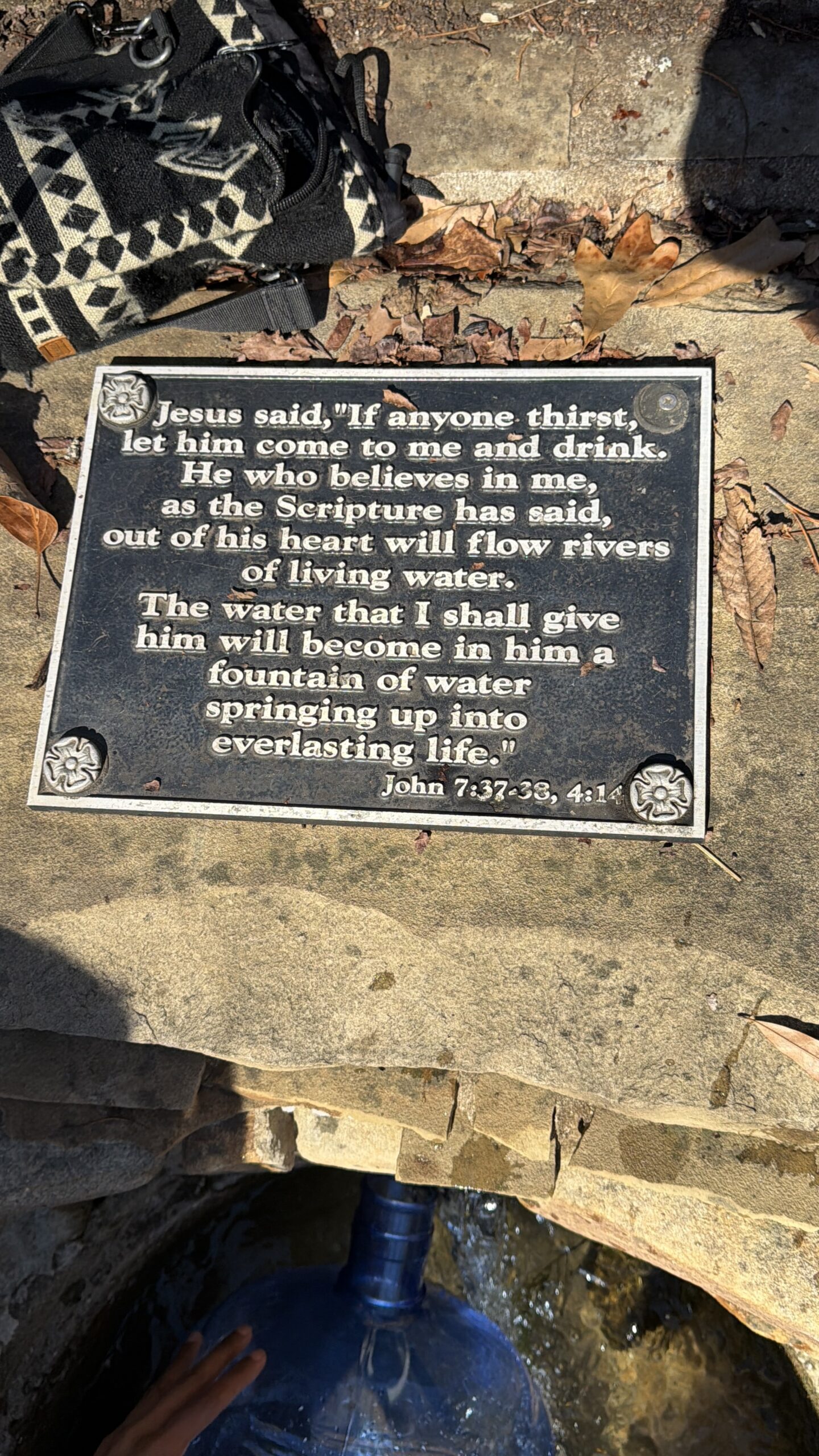 1. So grateful for water! Be sure to show gratitude for the land in the water. I also highly recommend just getting the freshwater coming out of the pipe. I had to put my jug in the pool part and my son definitely was putting his hands in the water. I would also recommend a wagon. It’s not a super long walk from your car if you park at the church to the spring, but it can be much easier because it’s a flat grass surface in between. Also go straight where you see a small brick cage building and go to the left of it. You’ll see some stone seating areas and then you will see beyond that where the spring water comes out at. I was able to put my 5 gallon drug in, but it did get into the pool part of the water. The water that I actually got straight, came straight from the pipe so I would not recommend getting water directly from the pool because you don’t know who has put cups in there or hands. We definitely did