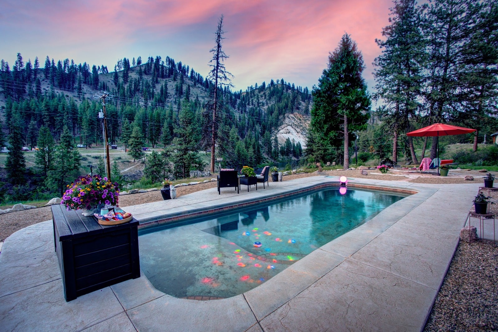 Double J&D is a historic hot spring ranch on the South Fork Payette River, currently available through airbnb bookings. This resort is over a century old and set along the scenic South Fork Payette River. A private bathroom and a 10-by-30-foot hot spring pool are within a few steps of the accommodation. All day, every day, guests may come and go as they like without worrying about what to wear.